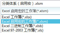 - Excel 2010 的扩展名为 *.xlsx,对于想要存储宏的 Excel 文件,需要存储为扩展名为 *.xlsm 的文件,另存的时候可以从文件列表中选择自己想要的文件类型。