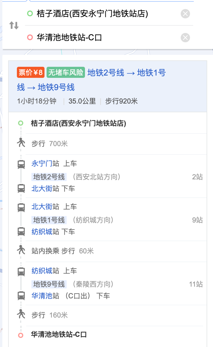 出行选择:vx/zfb 轻轨“重庆地铁” 公交“重庆公交”