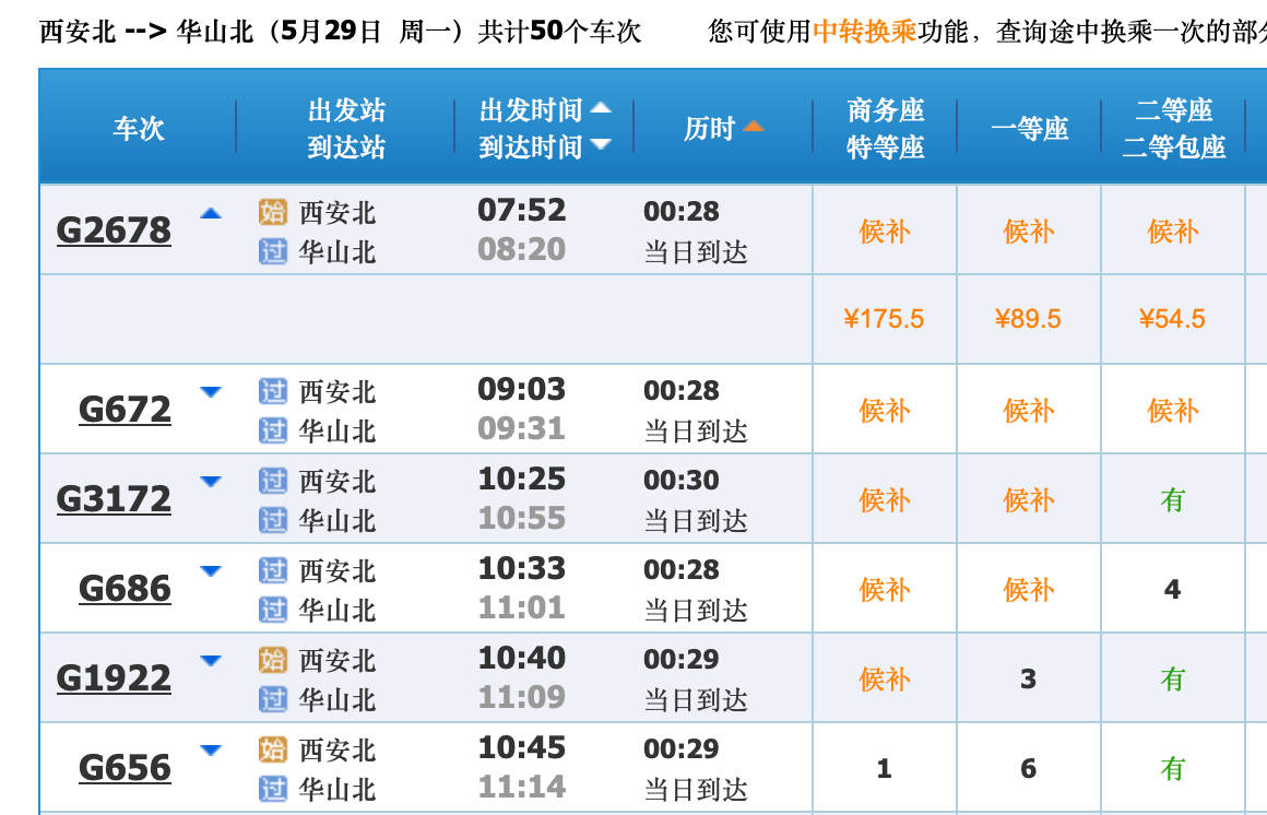 6:30 出门吃早饭 plan A:西安火车站有到华山的大巴 28/位,1.5h左右 plan B如下