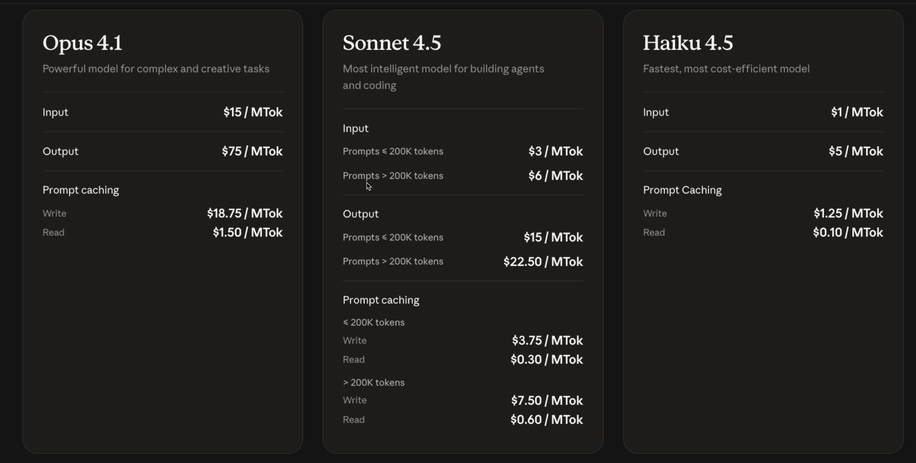 | Haiku 4.5 | Fastest, most cost-efficient model | 1 | 5 | 1.25 (Write) | 0.10 (Read) |