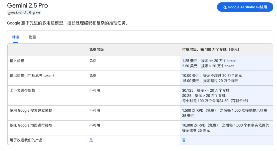 | 输入价格 | 1.25 美元,提示 <= 20 万个 token |