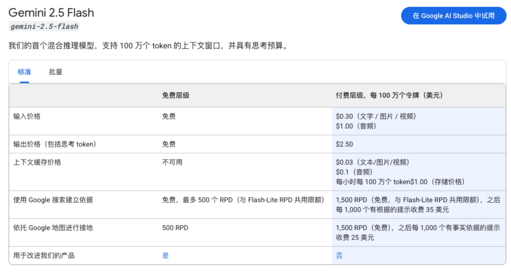 数据来源:[https://ai.google.dev/gemini-api/docs/pricing?hl=zh-cn](https://ai.google.dev/gemini-api/docs/pricing?hl=zh-cn)谷歌推出的多功能 AI 平台,覆盖多种自然语言和视觉任务,提供部分免费服务以吸引开发者。