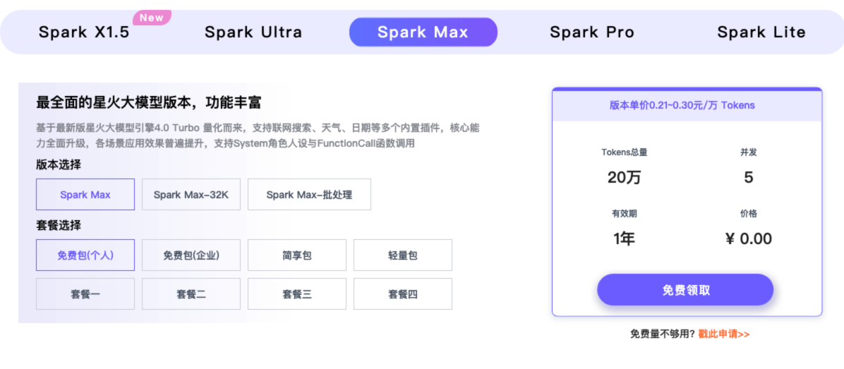 推出的讯飞星火语言模型,特别适用于教育、办公场景,Lite模型全面免费,主打实用性。版本单价2~3元/百万Tokens