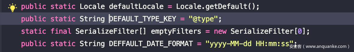 - 在DefaultJSONParser这个类中有一部分静态代码块,在实例化它的时候,最先调用静态代码块