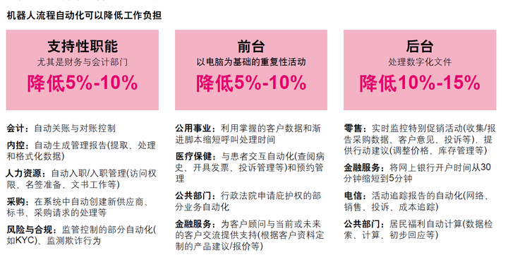 RPA机器人流程自动化能明显降低企业中后台的重复性职能工作负担,特别在财务与会计部门可以发挥最大的效果。