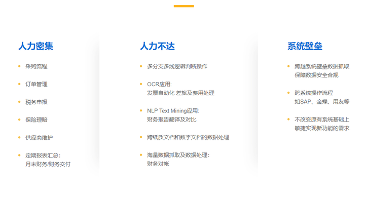 - RPA适用于高重复性并且具有既定逻辑的处理流程