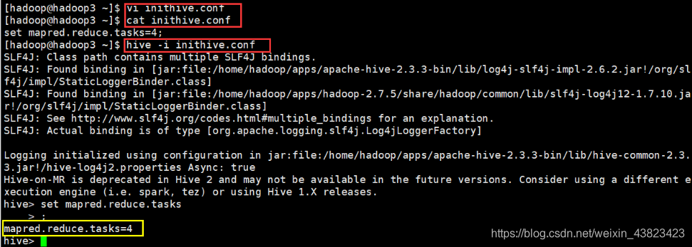 6、-hiveconf x=y(Use this to set hive/hadoop configuration variables)