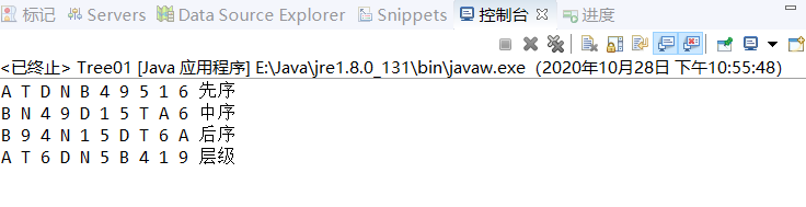 自己实现四个方法,Tree01方法中调用,将结果打印到控制台