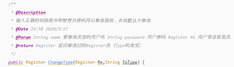 2.代码中局部变量和函数的名字含义清晰(以下图DataBase类中名字为例),使代码阅读者不需要过多的注释便可以了解各个变量和函数的具体作用(以下图函数头的描述为例,在阅读代码前使读者清楚ChangeType函数的功能)。并且代码中除函数描述之外并没有太多的注释,代码即文档,用最简单的注释解释清楚代码的含义才是最好的表述。