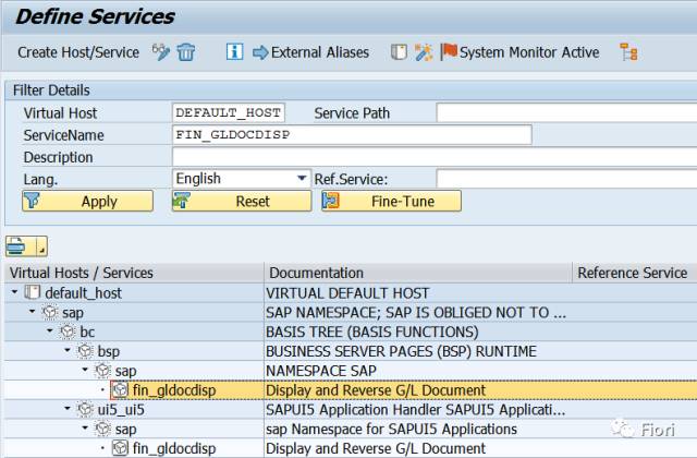 ICF Node 路径是/sap/bc/ui5_ui5/sap/fin_gldocdisp,激活从此服务。按照这个步骤依次激活所有ICF Node。