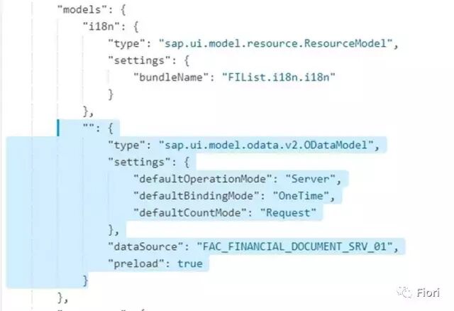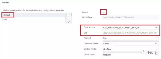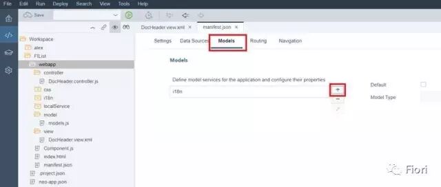 在文件manifest.json点击Models 页面,默认会出现i18n(国际化信息模型,就是存储Fiori App页面文字信息的)
