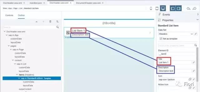 如下图,List Item有两部分,title和description,我们需要分别绑定信息: