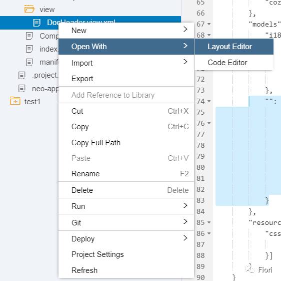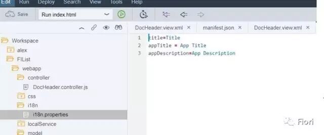 点击完成,我们的工程创建完成,Fiori App的基本代码框架就创建完成了,我们会看到如下图的页面: