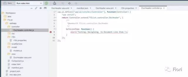 随便写一行:alert("Testing: Navigating to Document Line Item.");