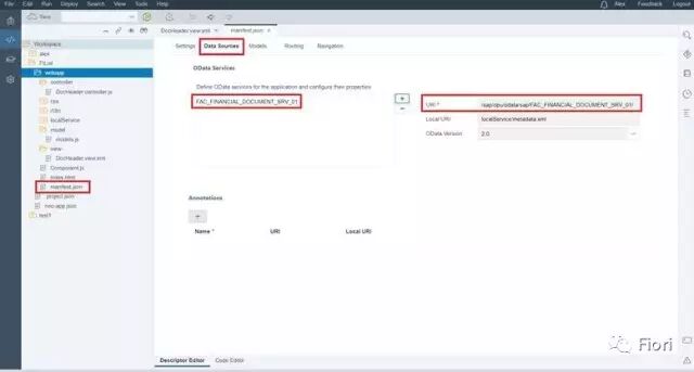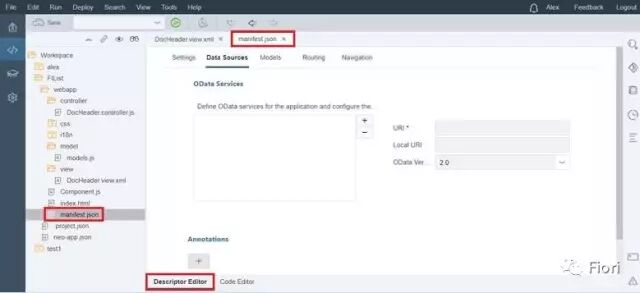 定义数据源,通过定义数据源可以建立和后端系统数据的连接,完成数据的增删查改,数据源在这里指:OData Service;