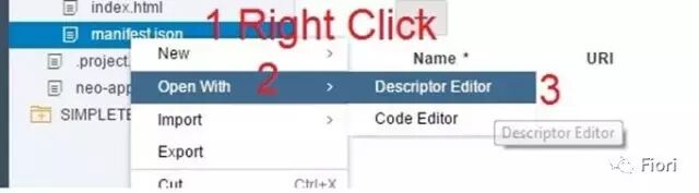 在文件manifest.json 上右键,选择Open With -> Descriptor Editor