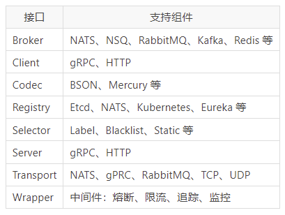 Go Micro 官方创建了一个 Plugins 仓库,用于维护 Go Micro 核心接口支持的可替换插件: