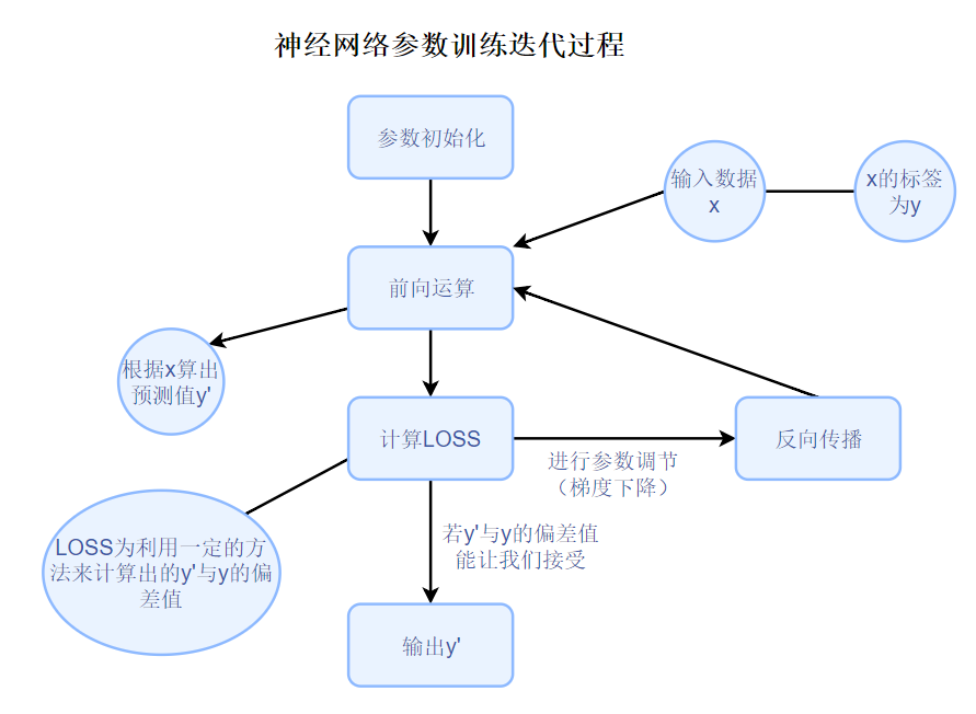 我们在网络结构已知的情况下,对神经网络参数进行迭代式地训练