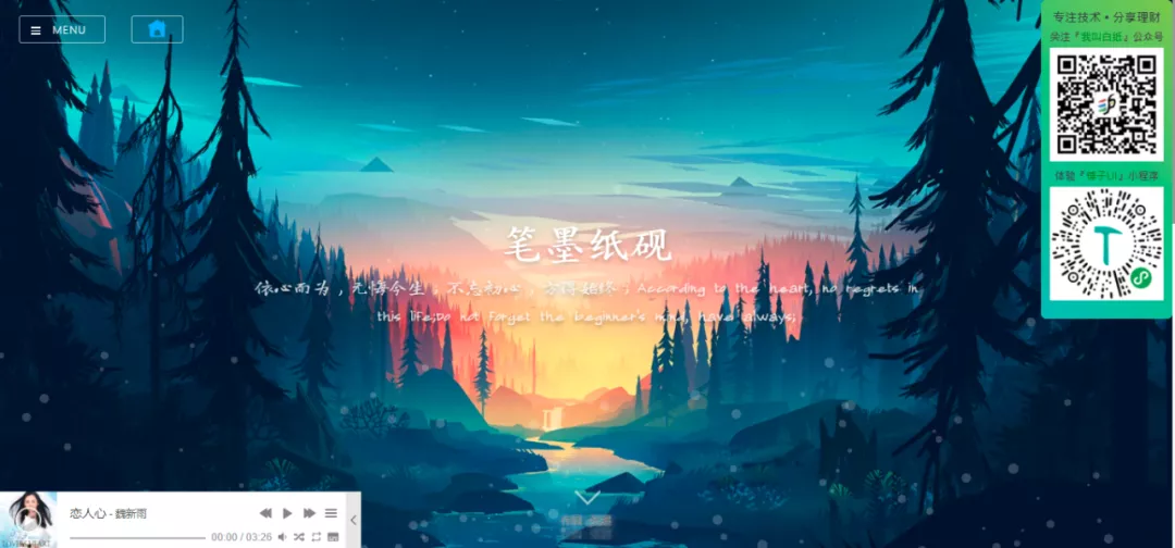 在此基础上博客首页增加了:首页快捷键、公众号二维码、小程序二维码、鼠标指针