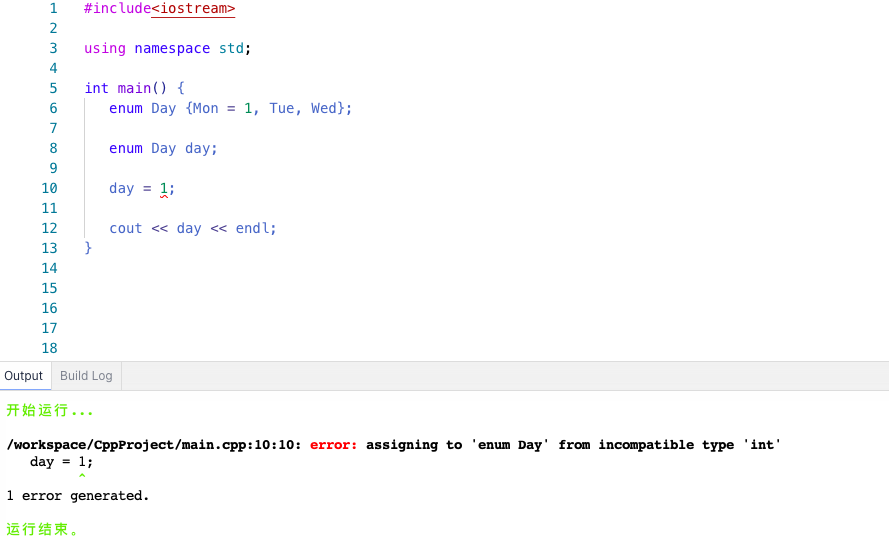 enum DAY { MON=1, TUE, WED, THU, FRI, SAT, SUN }; // 数据类型 enum DAY day; // 定义enum变量