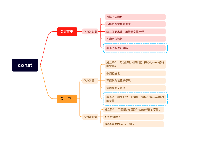 其实这也就是C和C++中const的区别导致的:在两种语言中,const的编译方式不同,C语言中,const修饰的变量是当做一个变量来生成编译指令的。