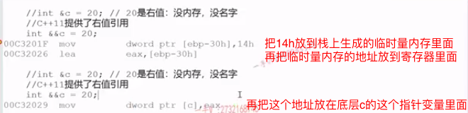 1、int &&c = 20; 专门用来引用右值类型,指令上,可以自动产生临时量,然后直接应用临时量c = 40;