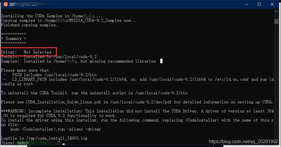 cuda 安装完之后,一定会显示 Driver not selected,正常。