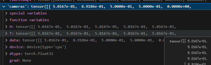 相机里面有H、T、data,可能要去pixelSplat论文里去看