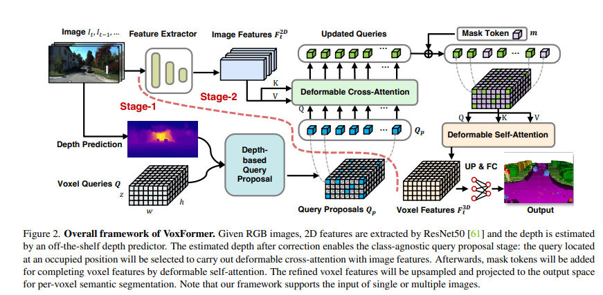 - VoxFormer: Sparse Voxel Transformer for Camera-based 3D Semantic Scene Completion