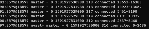 但是当你查看挂载的数据文件目录,以及内存占用情况就会发现,当前新增节点数据目录下并没有数据源,而是redis作为一个无中心数据库而言,数据并没有像添加slave那样,理所当然的继承了父类的所有属性并且获取了所有财产(数据)