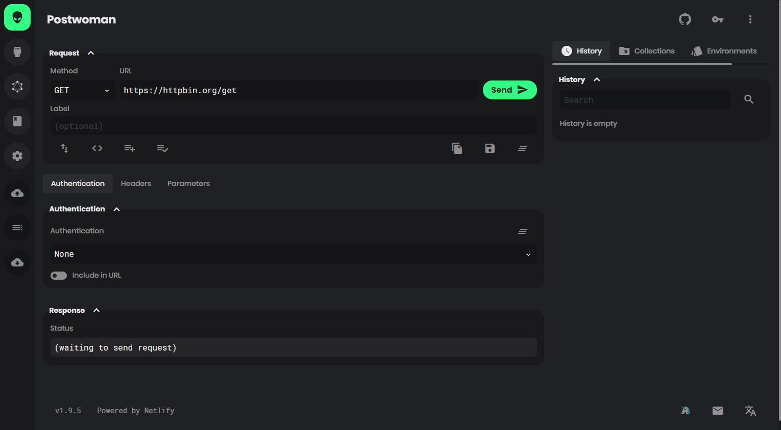 它是一款开源的 Postman 替代品 轻盈,可直接在线访问; 简约,采用简约的 UI 设计精心打造; 支持 GET, HEAD, POST, PUT, DELETE, OPTIONS, PATCH 方法; 支持验证; 实时,发送请求即可获取响应。