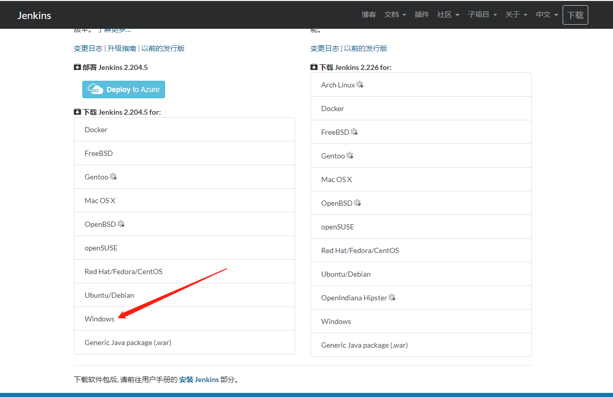 - 下载https://jenkins.io/zh/download/