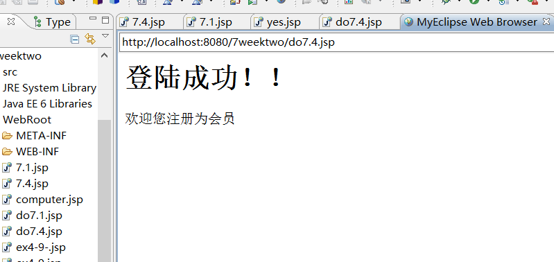 <%@ page language="java" import="java.util.*" pageEncoding="utf-8"%> <html> <head> <title>My JSP 'index.jsp' starting page</title> </head> <body> <h1>登陆成功!!</h1> </body> </html>