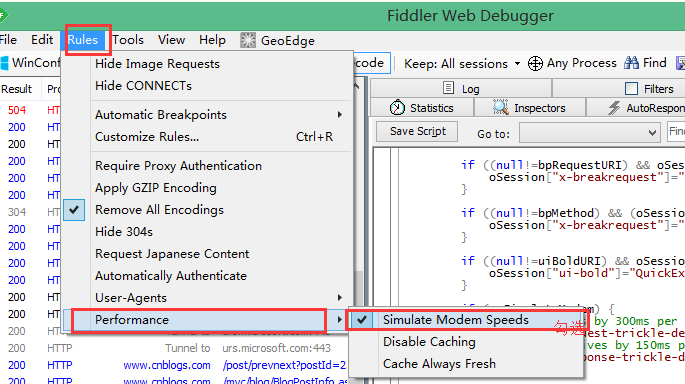 1.Rules – Customize Rules(快捷键Ctrl + R)打开Fiddler ScriptEditor