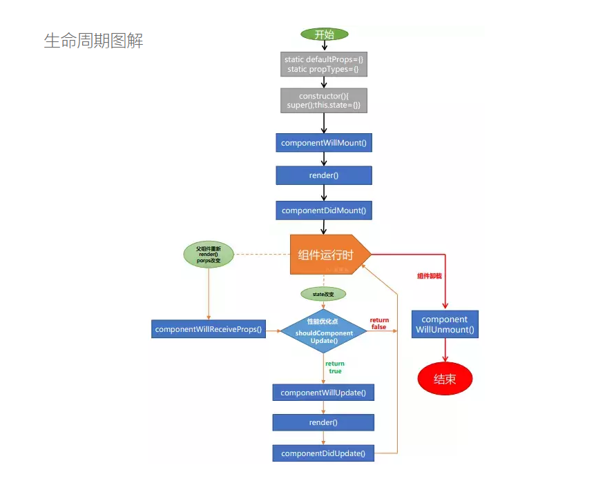 defaultProps 为props定义默认值,在组件中声明static静态属性