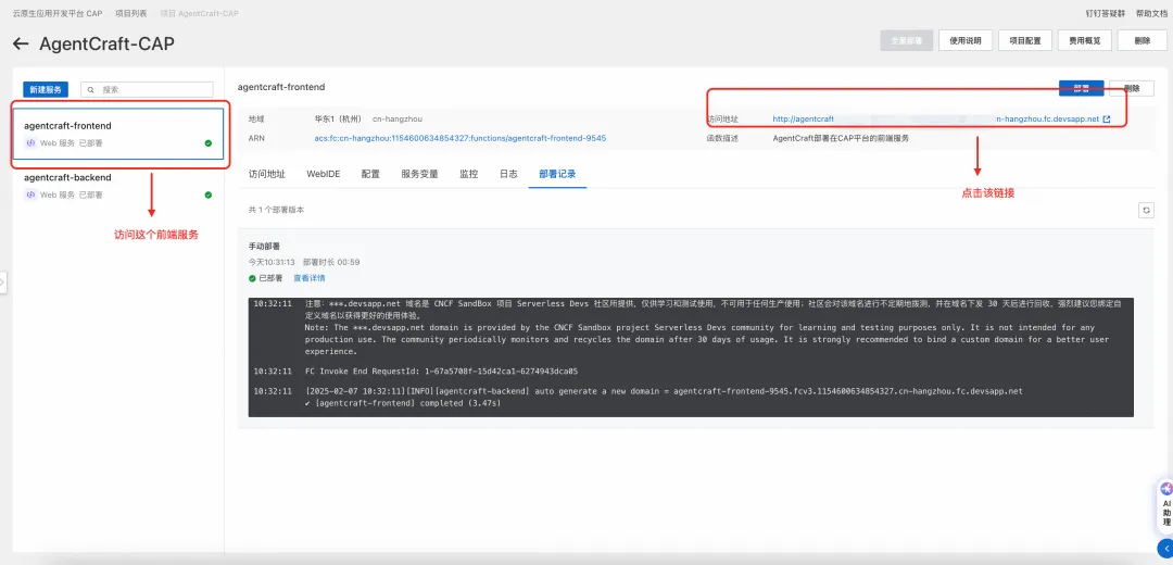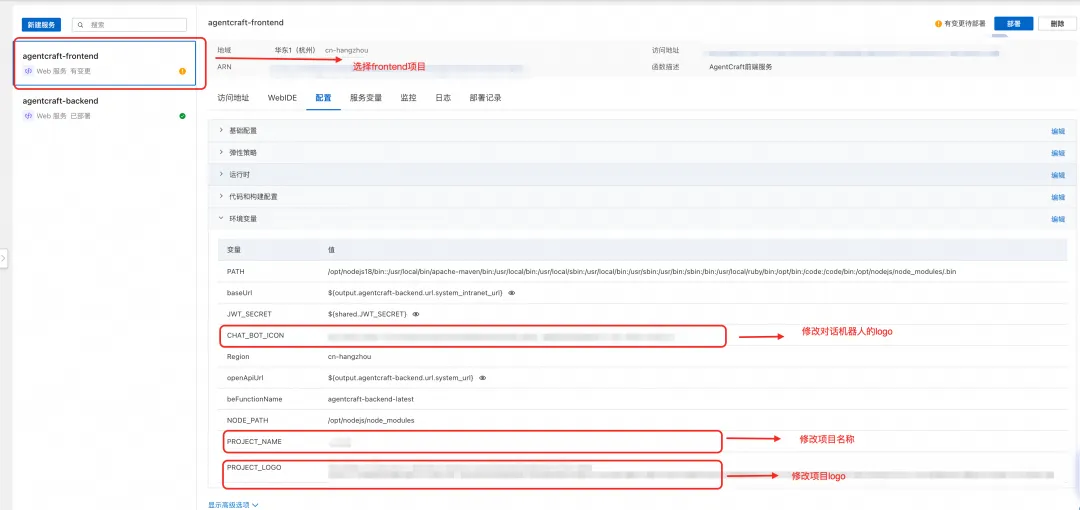 本次部署架构如下图,整个服务的关联上下游如图所示。使用的服务软件为 AgentCraft [ 1] ,AgentCraft 是一个 Serverless 架构的智能体平台,相比于 Dify,Coze 其优势在于高度 Serverless 化,真正的按需服务,完美兼容 Serverless Devs [ 2] 的社区生态,可以复用 Serverless Devs 社区生态的应用及 AI 工具。更多介绍参考 AgentCraft 文档 [ 3] 。