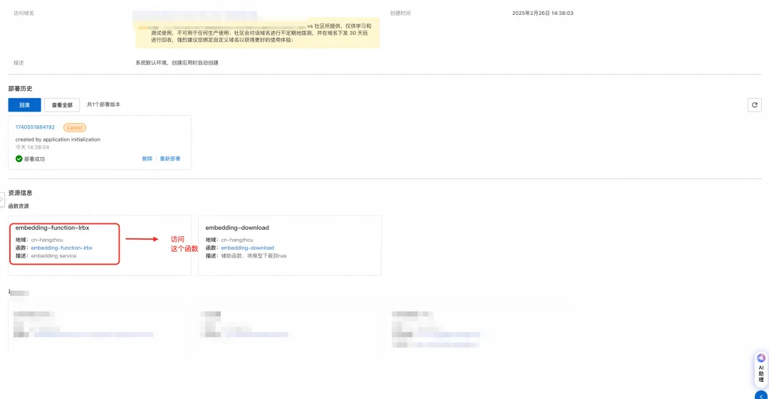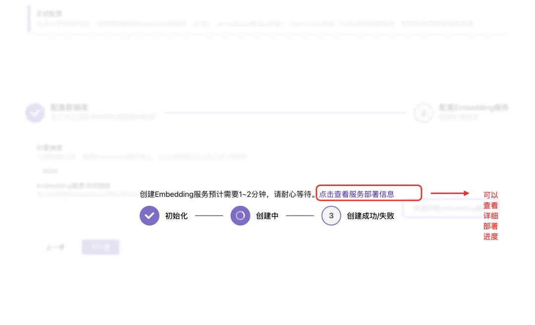 🔔 注: 使用子账号部署该模型服务的时候,可能会因为权限问题导致失败,此时可以先跳过该步骤,参考《更多补充说明》-向量模型单独部署配置。