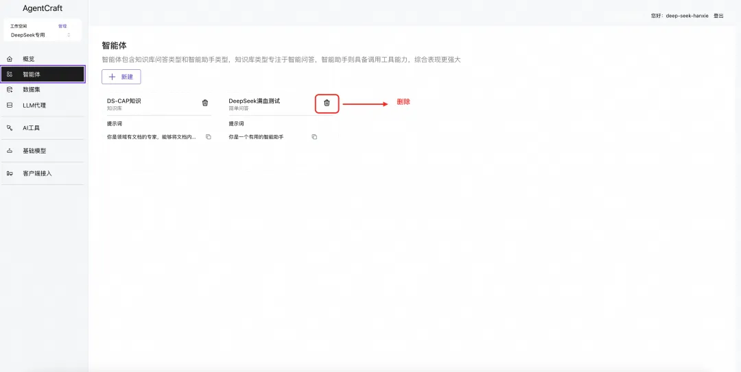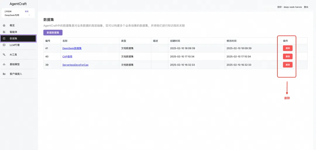 如果您使用的是共享数据库,您一定要及时清理数据,需要删除相关的数据集,LLM 代理,以及智能体,因为这些数据会存在于共享数据库并不安全。