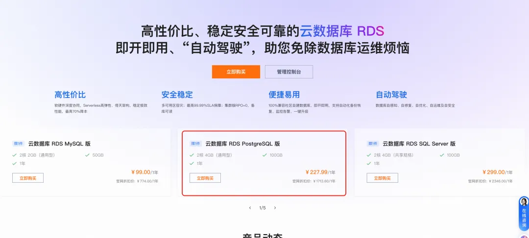 阿里云postgresql实例购买链接:https://www.aliyun.com/product/rds?spm=5176.28536895.nav-v2-dropdown-menu-1.139.3e18586cAVXbW6&from=agentcraftagentcraft