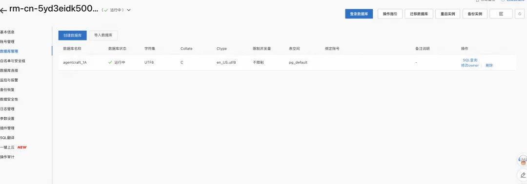 如果您需要长期使用该服务,确保所有数据专属化,您需要关注这个部分。AgentCraft 使用的是 PostgreSql 数据库,您可以考虑在您的虚拟主机上,通过镜像方式拉取,这里是镜像地址 registry.cn-hangzhou.aliyuncs.com/agentcraft/agentcraft-pg:v1,虚拟机上装好之后还需要配置网络等等。