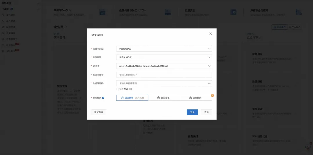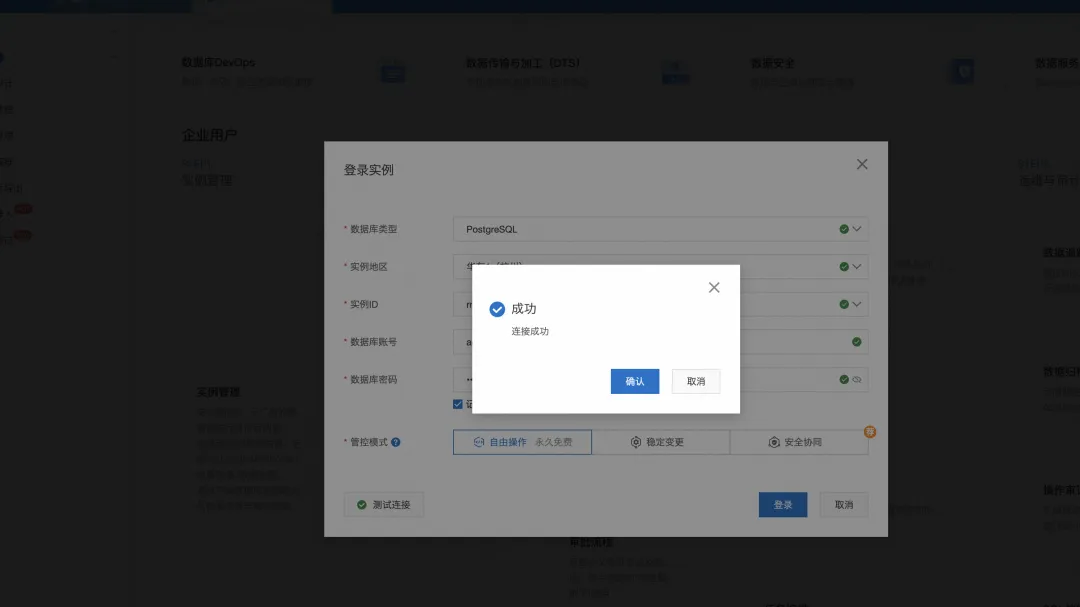 A:数据库如果使用内网链接,需要保证 vpn 一致,同时确认您的配置使用高权限账号,并且高权限账号授权给您的数据库。