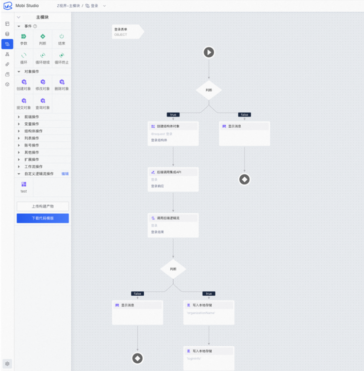 逻辑流串联了应用内的页面模型和数据模型,能够实现应用内的逻辑交互。魔笔的可视化逻辑流搭建,帮助浙江台研发同学高效实现系统页面或组件间的交互功能。