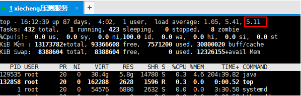 用这个数值去除以核心数就是当前单核负载(此服务器40核),5.11/40=0.12(表示单核负载),看结果,如果小于1,就是正常,如果等于1就是满载,如果大于1就是超载