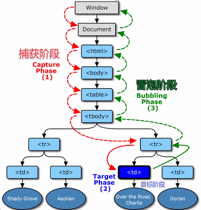 baba.attachEvent('onclick', fn)//IE5:事件冒泡 baba.addEventListener('click', fn)//网景:事件捕获 baba.addEventListener('click', fn, bool)//W3C:如果bool不传或为falsy, 则fn使用事件冒泡, 反之则fn使用事件捕获.
