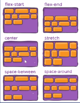 display:flex flex-direction:row/column flex-wrap:wrap just-content:center/space-between align-items:center
