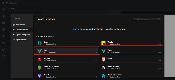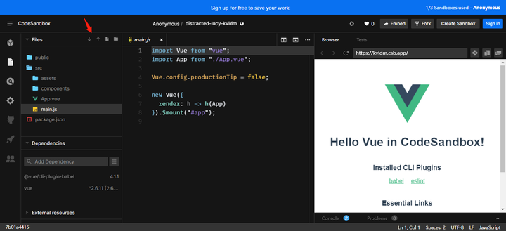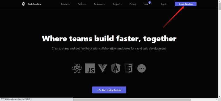 输入URL:Online Code Editor and IDE for Rapid Web Development 进入codesandbox