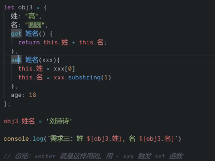 那么有get 就有会有set,set用来改写函数里面的值,如何使用set呢?