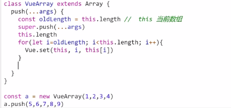 如果你分析了源码,其实变异方法就是使用了继承,通过继承JS的push后再添加新的功能。