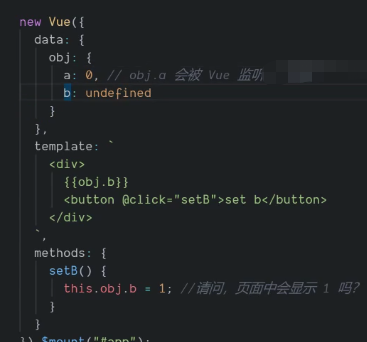1.那我不给b值,我给他一个undefined,告诉vue我虽然没值,但是我是有一个b的key