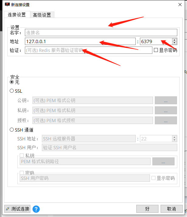 填写服务器名称,服务器ip地址,端口以及密码即可。